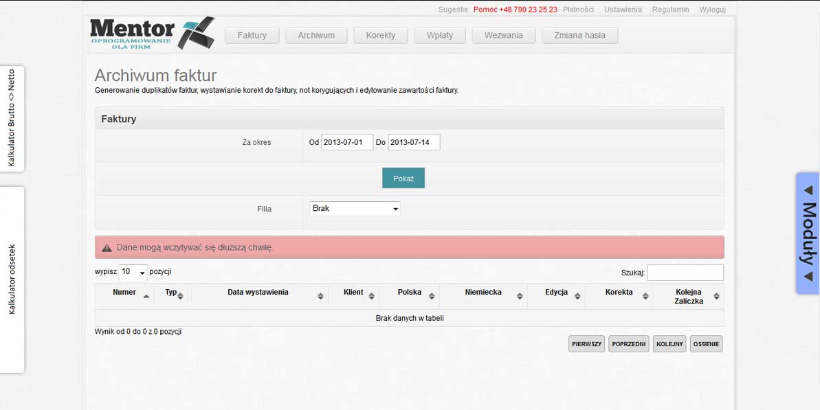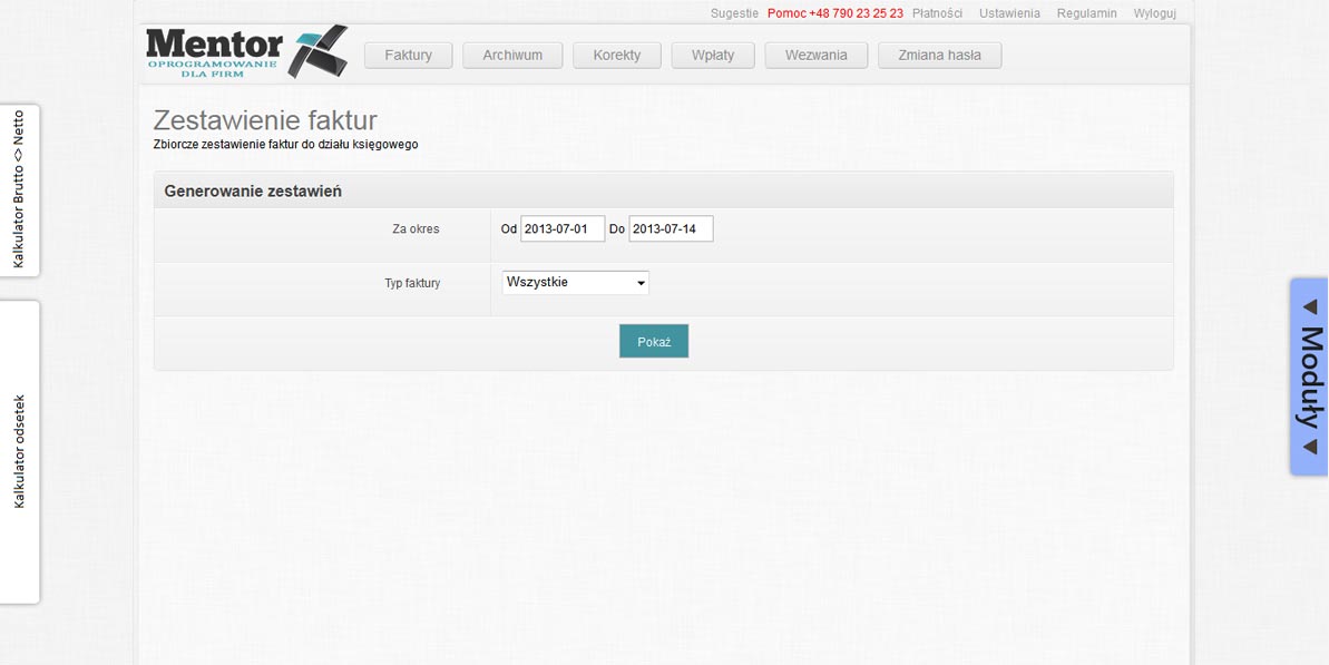 nad płatnościami za wystawione faktury. W przypadku braku płatności ze strony kontrahenta możliwe jest wystawianie wezwań do zapłaty w