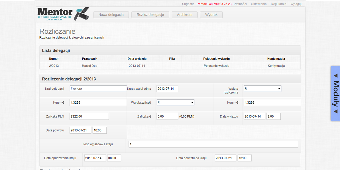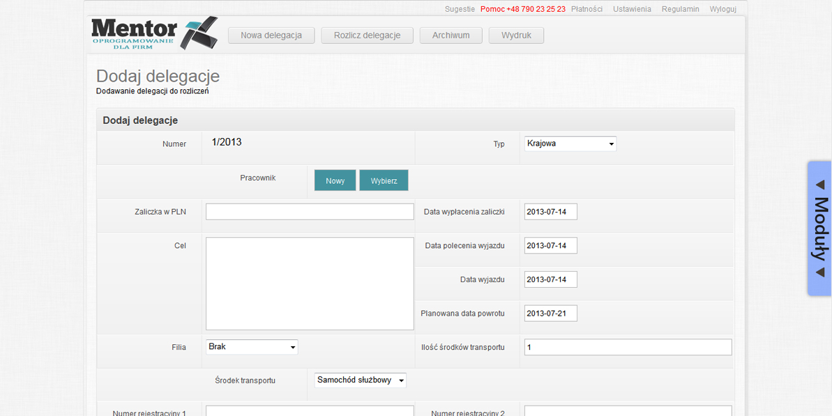 Witamy w MENTOR dla firm i tym samym w module Delegacje krajowe i zagraniczne. Mentor to program wspomagający zarządzanie firmą.