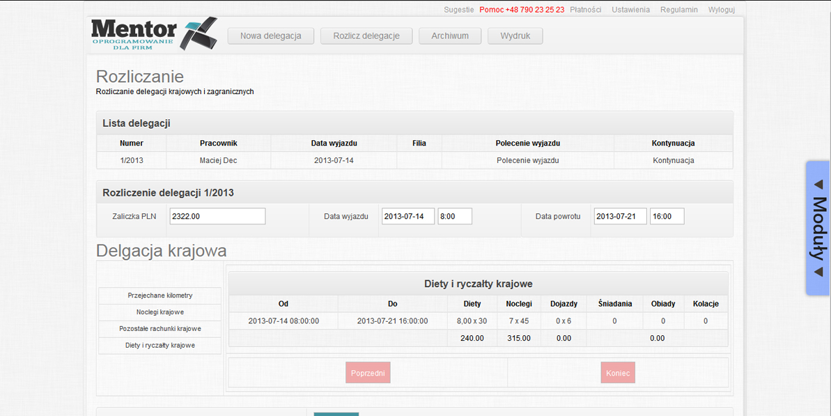 i rozliczania diety i zaliczki wydanym pracownikom. Moduł jest zgodny ze zmianami przepisów z dnia 1 marca 2013 roku. To z jego pomocą