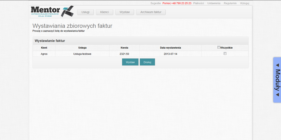 Wygenerowane faktury będą posiadały numerację zgodną z całym systemem fakturowania. Po wygenerowaniu faktur wystarczy je wydrukować i przesłać na aders kontrahenta.